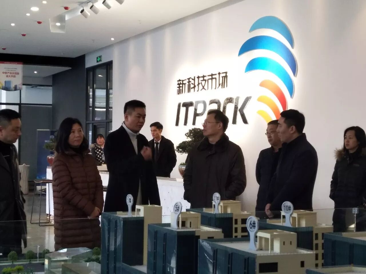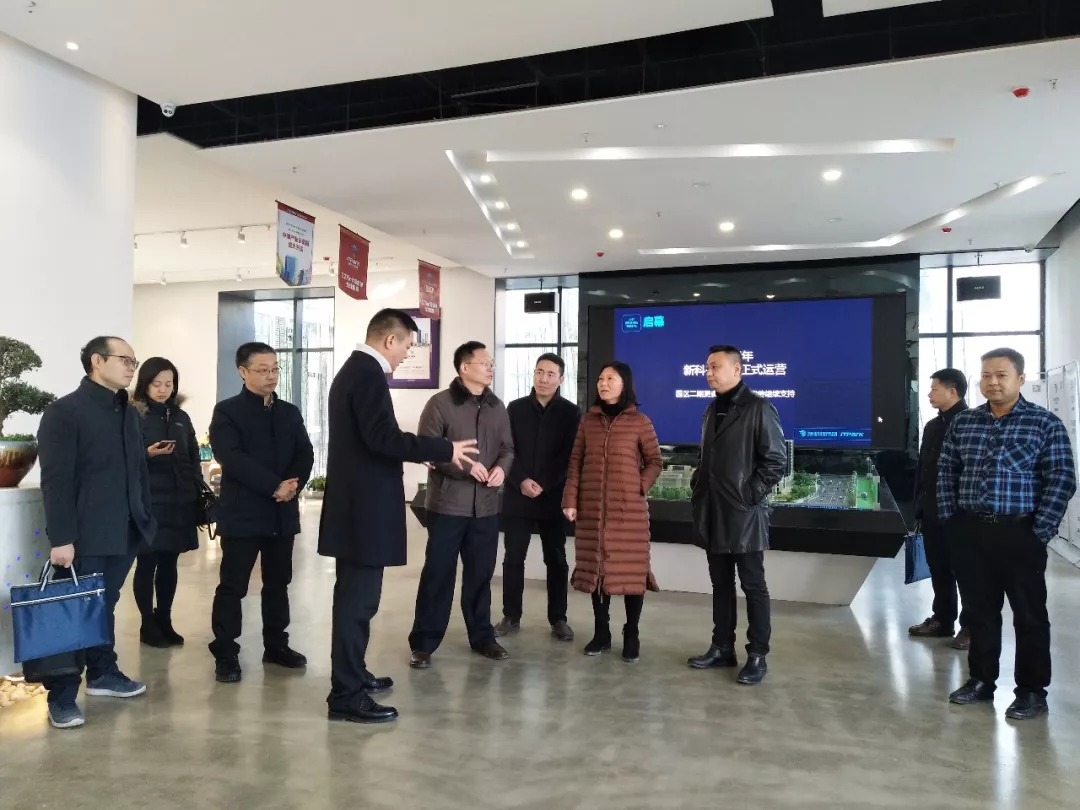 2018年1月12日,河南省郑州市科技局副局长任灿、区科技局副局张磊一行莅临新科技市场,对园区产业运营发展情况及未来的发展规划进行参观调研,新科技市场科技园董事长李军及园区相关负责人随行接待。